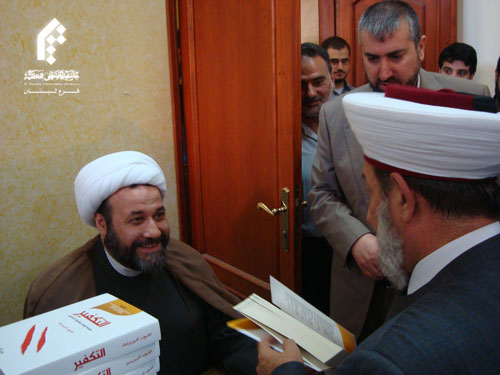 ضمن نشاطات معرض الكتاب الحوزوي الذي تقيمه معاونيّة البحوث في جامعة المصطفى (ص) العالميّة تقدم سماحة الشيخ الدكتور أكرم بركات بتوقيع كتابه الصادر حديثاً تحت عنوان:التكفير، ضوابط الإسلام وتطبيقات المسلمين، وذلك بحضور سماحة الشيخ هشام خليفة، إلى جانب معاون البحوث سماحة السيّد حسين إبراهيم، ومدير العلاقات الثقافيّة سماحة السيّد علي مرتضى.
